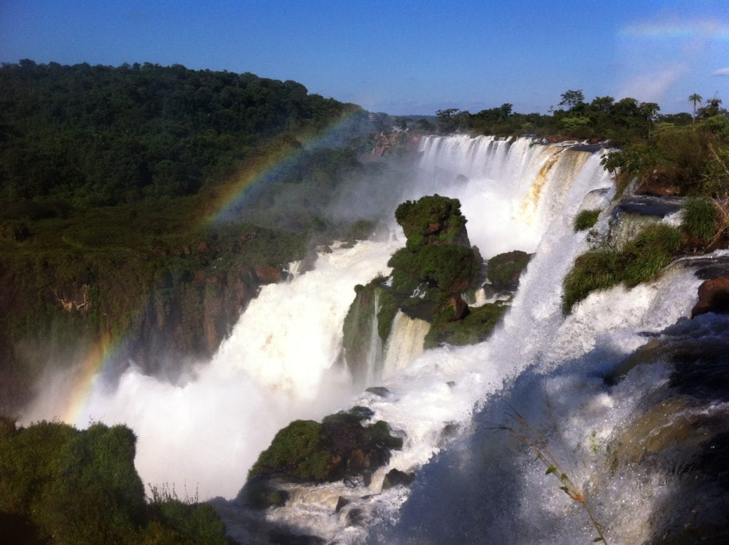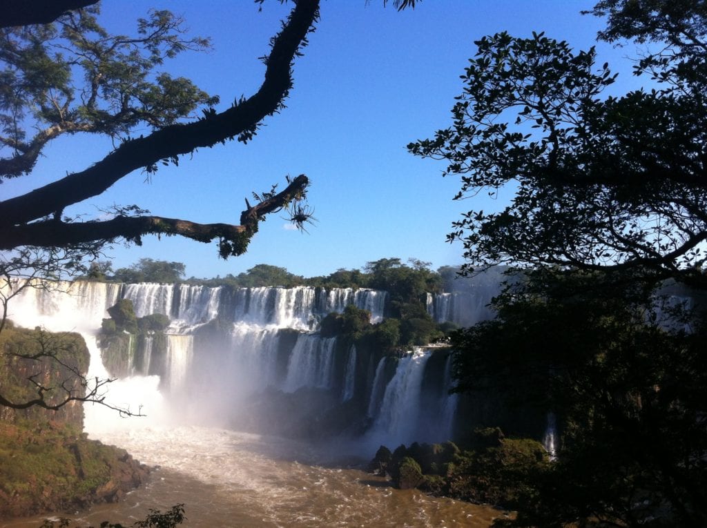 Naszą przygodę z Argentyną rozpoczęliśmy od miasteczka Puerto Iguzau. Dostać się do niego nie trudno z Brazylii, wystarczy wsiąść w lokalny autobus by po 20 minutach wysiąść w kraju Maradony i Messiego. Po zostawieniu bagaży w jednym z miejscowych hosteli wyruszyliśmy na zwiedzanie wodospadów po stronie argentyńskiej. Argentyński Park Narodowy jest dużo, dużo ciekawszy, a jego zwiedzanie pochłania cały dzień. Składa się z ok. 270 kaskad, do których dochodzi się po metalowych mostach zawieszonych nad rzeką. Największe wrażenie robi tzw. „Devil’s Throat”, której towarzyszy niesamowity huk, obłoki pary niczym z piekielnego kotła i nieprawdopodobnie piękne tęcze.